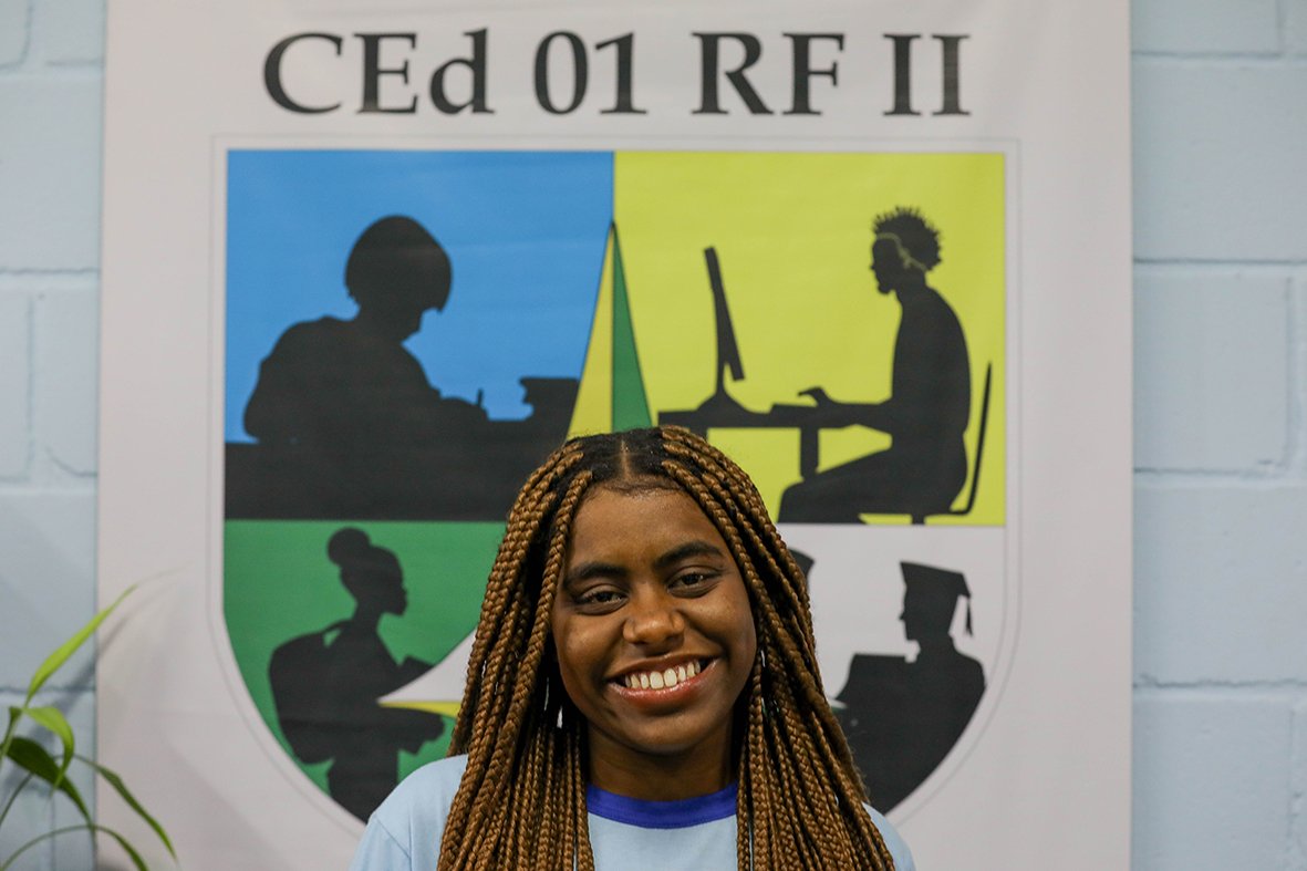 Já a aluna do 3º ano do mesmo colégio, Ana Luiza Dias, 17 anos, escolheu o tema “Desafios e Oportunidades no Berço das Águas”. Seu projeto busca compreender como os cidadãos podem desenvolver consciência ambiental em relação ao Berço das Águas, situado no Riacho Fundo II, levando em conta o perfil socioeconômico da população local. “O objetivo é conscientizar as pessoas sobre esse assunto e trazer também os alunos do CEF 1 para um envolvimento com o projeto. Para mim, só participar já é uma vitória”, afirma, orgulhosa.