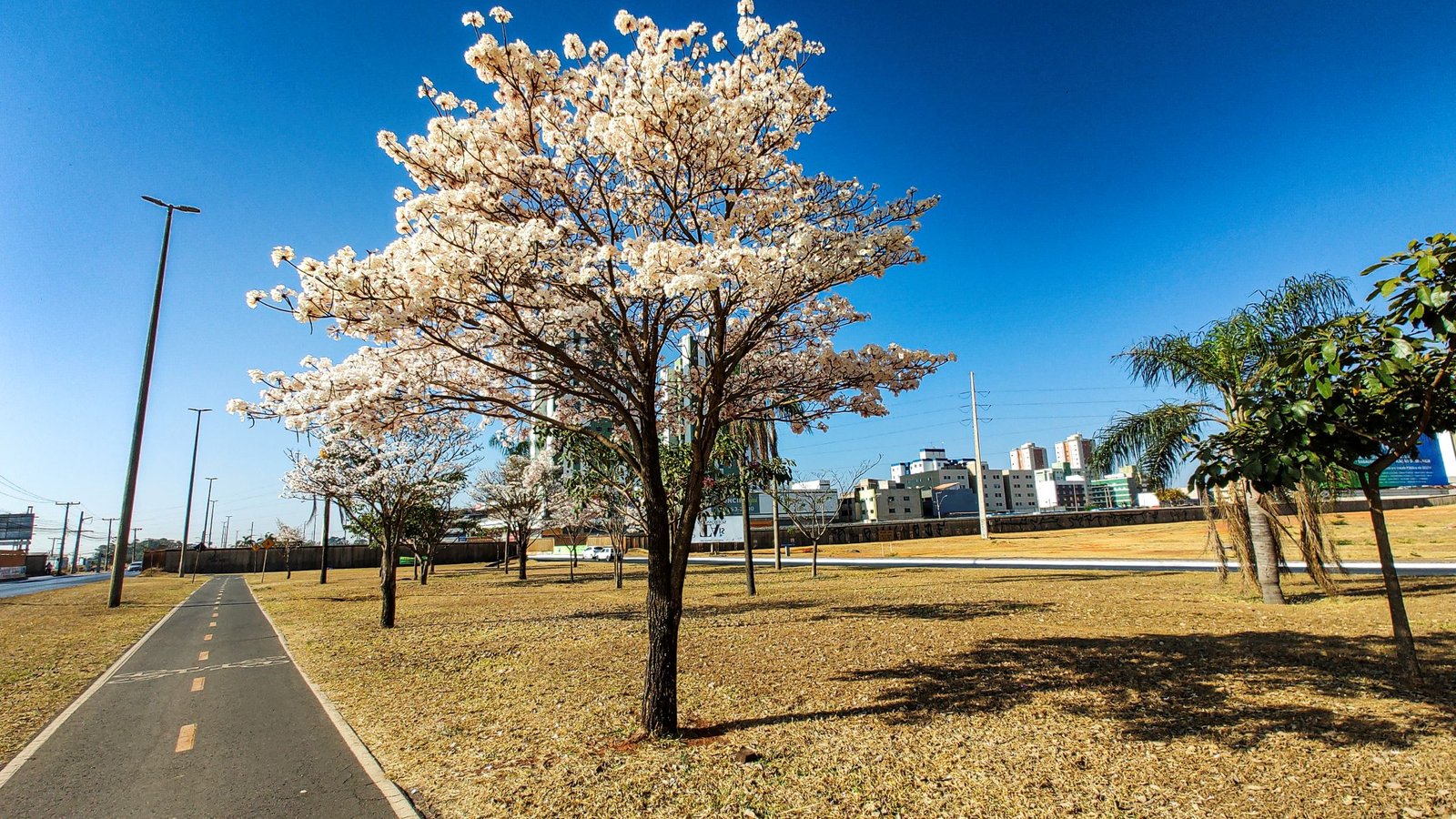 → Ipês: os ipês são os protagonistas do período. O arco-íris formado por suas variedades – roxo, amarelo, rosa, branco e até verde – cobre a cidade. Com cerca de 600 mil exemplares no DF, os ipês são um símbolo de Brasília, marcando presença em locais como o Eixão Norte e Sul e as quadras 404 e 216 da Asa Norte.