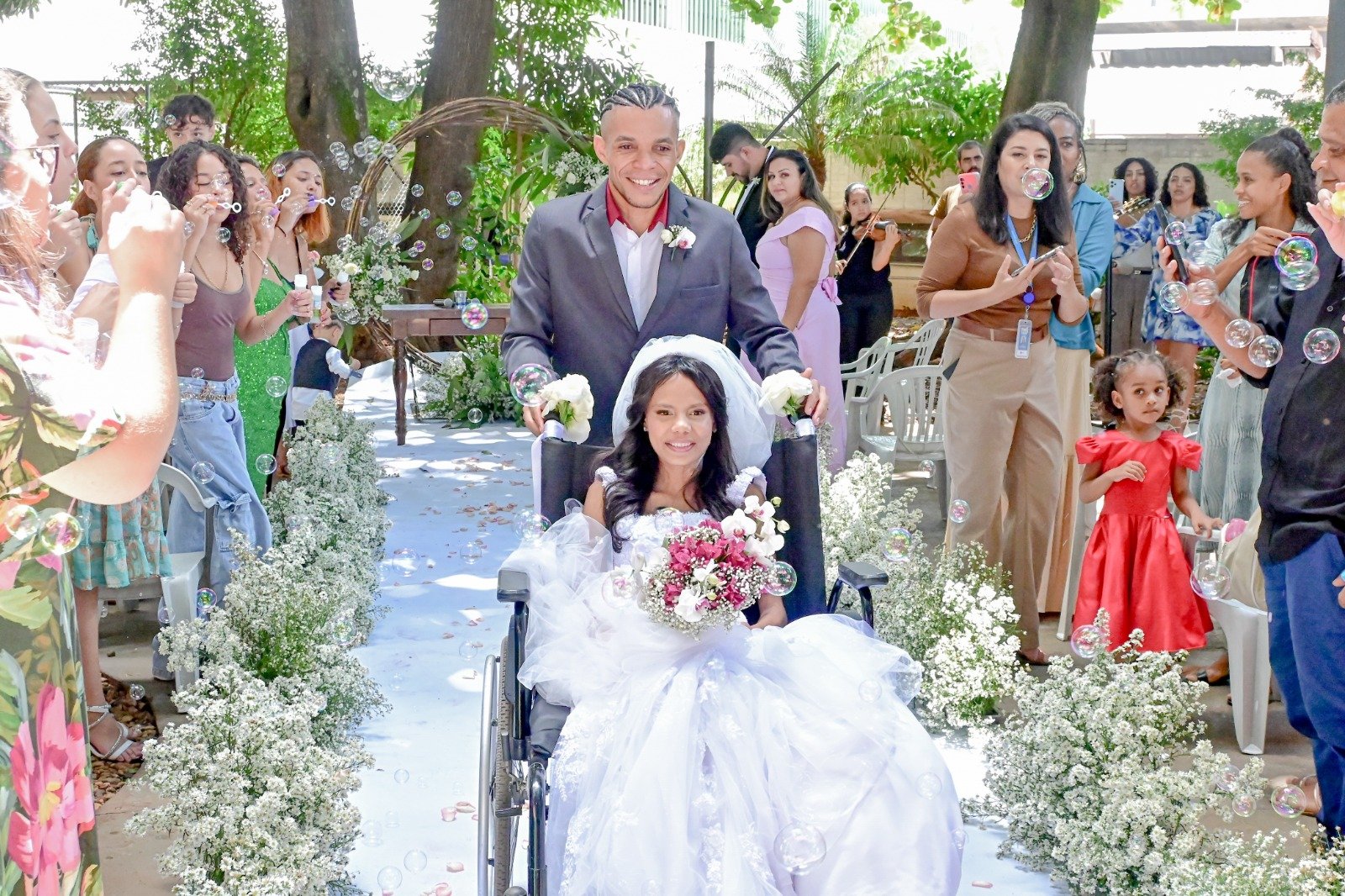 Vanessa teve direito a tudo com que sempre sonhou na cerimônia realizada no jardim do Hospital de Base