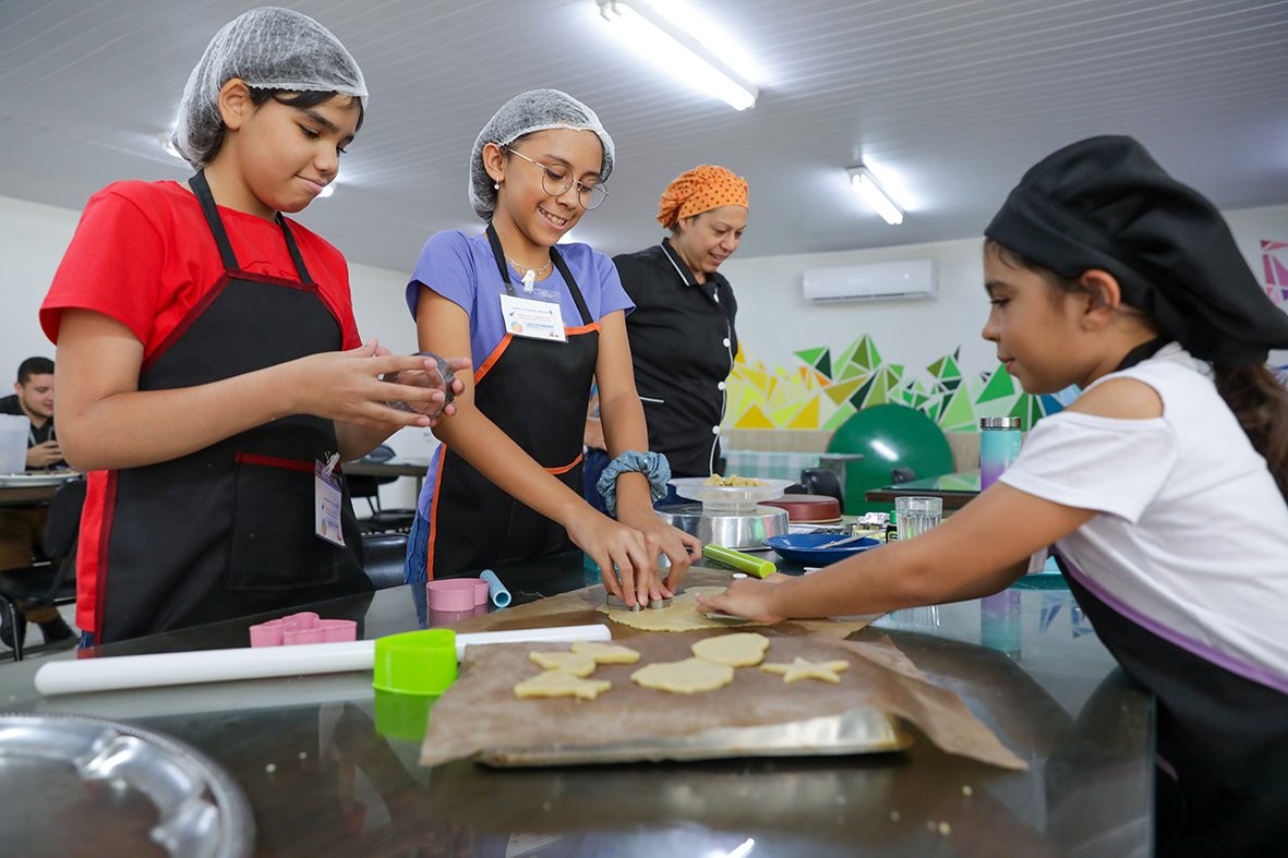 Luciane Azeredo, professora de gastronomia, elogiou o desempenho das crianças: “Na leitura elas têm toda essa questão imaginativa, e na cozinha estão vendo um pouquinho de lá se materializando, feito pelas próprias mãos”