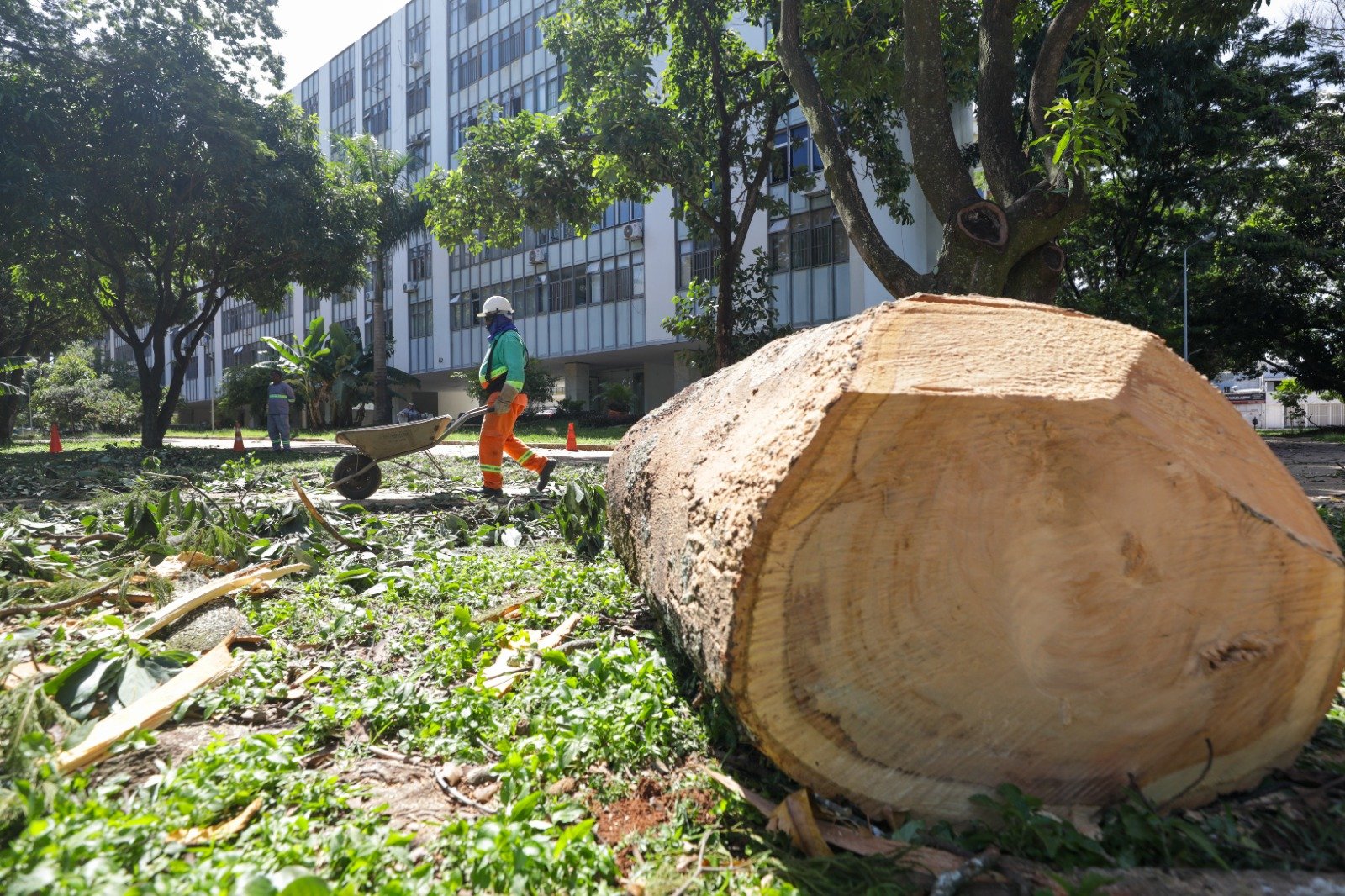 O Governo do Distrito Federal (GDF) intensificou as ações de corte e poda de árvores na área central de Brasília com a chegada do período chuvoso. A Companhia Urbanizadora da Nova Capital do Brasil (Novacap) mobilizou, nesta quinta-feira (23), aproximadamente 200 servidores para atender ocorrências preventivas e emergências depois das fortes chuvas registradas na quarta-feira (22).
