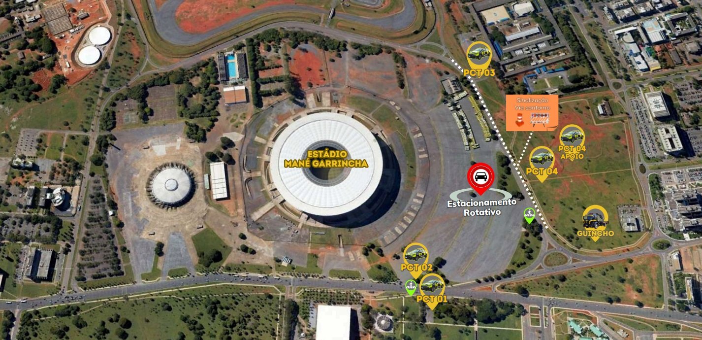 As intervenções começam às 16h30, quando as equipes atuarão no controle de tráfego nas imediações da Arena, em pontos fixos e realizando o patrulhamento na região a fim de melhorar a fluidez, garantir a segurança viária e coibir infrações. O estacionamento do Planetário será isolado, sendo destinado para táxis. Nas proximidades do local, os agentes do Detran-DF vão auxiliar a travessia de pedestres.