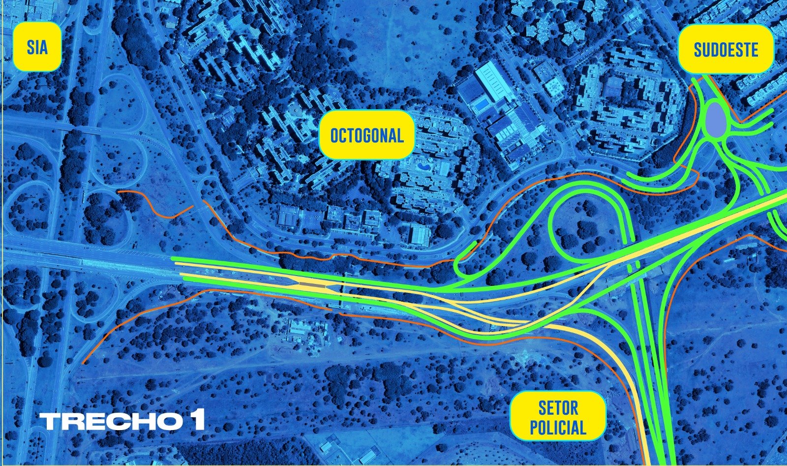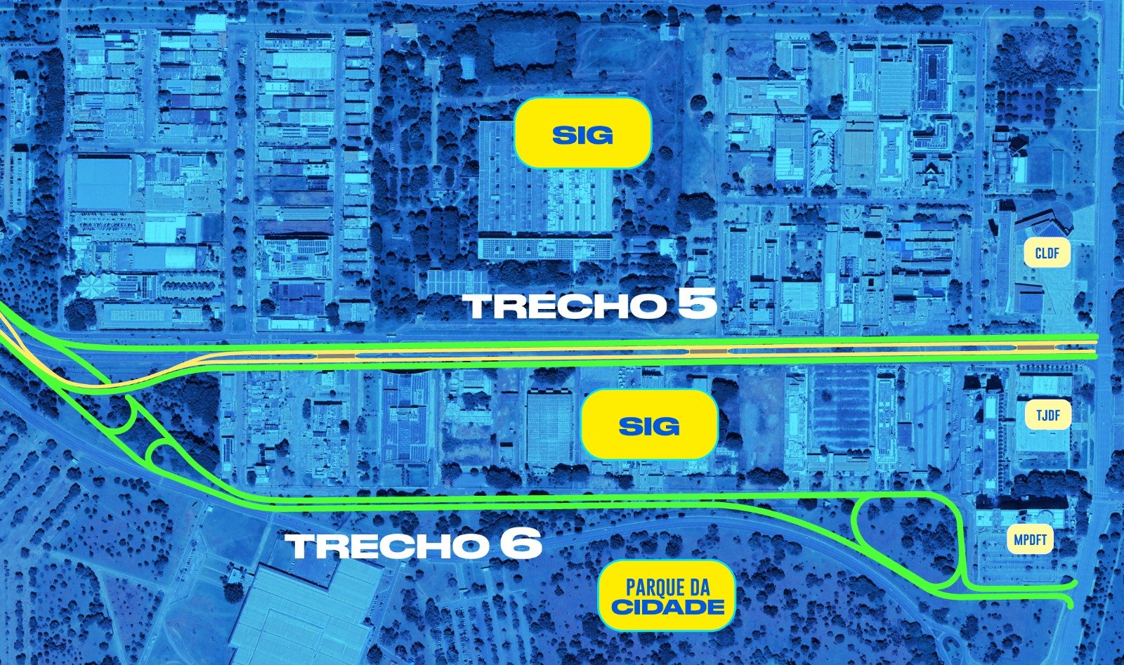Entre os que estão em obras, o trecho 1, que vai do viaduto da Estrada Parque Indústria e Abastecimento (Epia), na altura do Setor de Indústria e Abastecimento (SIA), até a Octogonal, é o mais adiantado. Nele, resta apenas a execução da ligação do novo viaduto com o restante da Epig, que será feita agora, após a liberação do desvio.