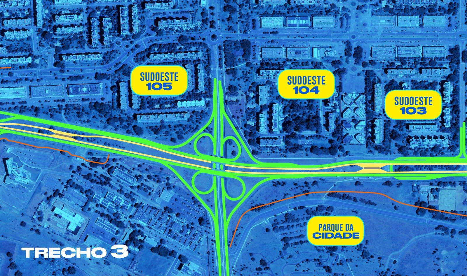 Para facilitar a execução e reduzir os impactos no trânsito, os trabalhos na Epig foram divididos em seis trechos (acesse aqui a visão geral da obra). Um deles, o trecho 3, já está pronto. É o do viaduto Engenheiro Luiz Carlos Botelho, que liga a Avenida das Jaqueiras, no Sudoeste, ao Parque da Cidade.